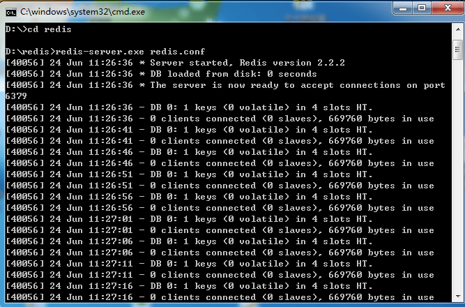 超级管理员身份打开一个cmd窗口使用cd命令切换目录到 D:\redis