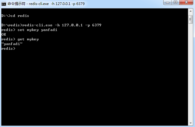 切换到redis目录下运行redis-cli.exe -h 127.0.0.1 -p 6379 。